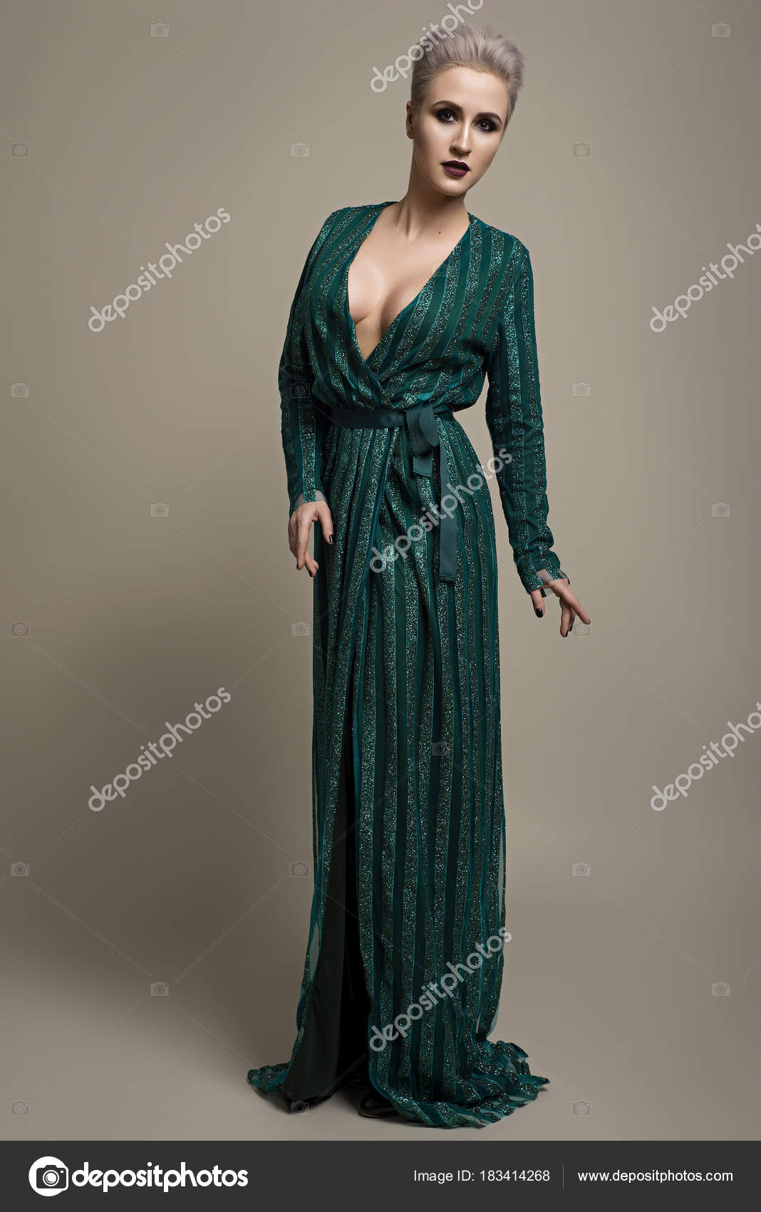 Young And Attractive Blond Model Dressed In Evening Gown And