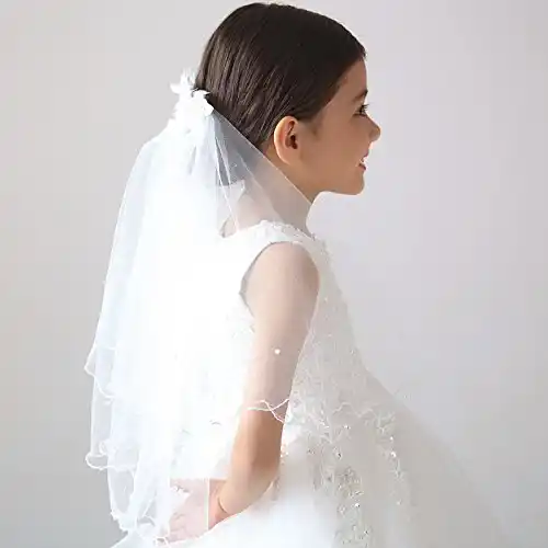 In Stock White Ivory Flower Girl Veils Two Layers White